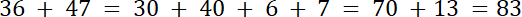 Policzono sposobem Ewy: dodano najpierw dziesiątki i jedności osobno, a następnie zsumowano je.