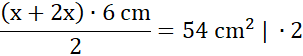 18x cm= 108 cm2 | : 18 cm