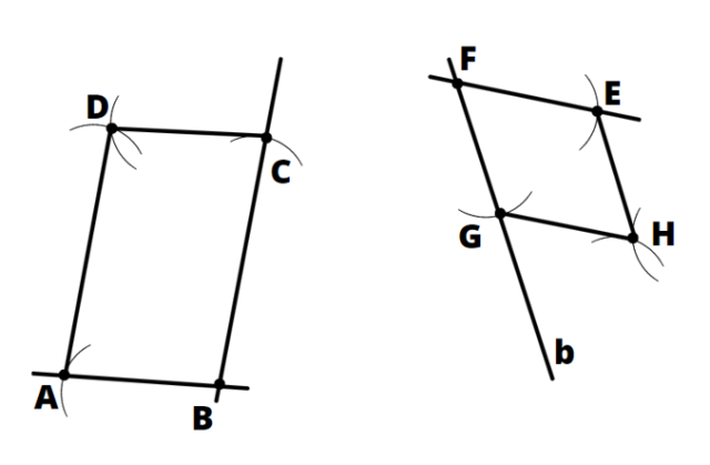 Uzupełnij konstrukcję równoległoboku ABCD i rombu EFGH. Punkt G musi leżeć na prostej B.