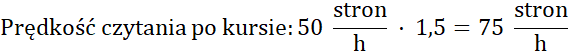 Oblicz ilość stron przeczytanych przez panią Ewę po kursie w czasie 5 godzin, jeśli czytała 1,5 raza szybciej.
