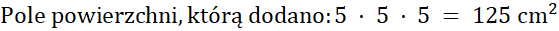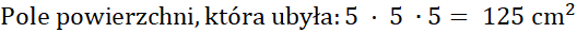 W tym ćwiczeniu musisz obliczyć, ile powierzchni ubyło, a ile zostało dodanej poprzez wycięcie sześcianu, a następnie obliczyć powierzchnię całkowitą bryły.