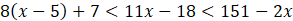 Zamień nierówność podwójną na układ nierówności. Następnie rozwiń wszystkie nawiasy i pozostaw wyrazy z x po lewej stronie, a całą resztę – po prawej. Rozwiązaniem jest część wspólna zbiorów rozwiązań obu nierówności.