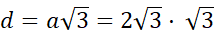 Zauważ, że przekątna krótsza w sześciokącie foremnym ma długość:
