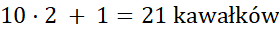 W tym ćwiczeniu musisz obliczyć ilość kawałków sznurka po 10 cięciach. Po pomożeniu liczby cięć przez dwa, do wyniku dodaj 1.