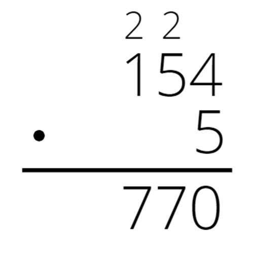 Pomnóż każdą cyfrę pierwszego czynnika, zaczynając od jedności. Jeśli iloczyn będzie dwucyfrowy, to przenieś cyfrę dziesiątek do następnej kolumny, a cyfrę jedności przepisz pod kreską. W następnej kolumnie cyfrę dziesiątek z poprzedniej kolumny dodaj do następnego iloczynu.