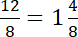 Odległość między punktem 0 a 1 wynosi 8 małych odcinków. Współrzędne punktu K zapisz za pomocą ułamka niewłaściwego i liczby mieszanej.