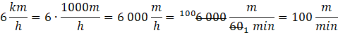 , zastanów się, ile metrów mieści się w jednym kilometrze, a ile minut w jednej godzinie. Wtedy do ułamka wstaw odpowiednie wartości –