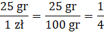 W tym zadaniu musisz powiedzieć, jaki ułamek złotówki stanowi 25 groszy.