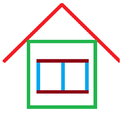 Używając wyłącznie cyrkla do określenia długości krawędzi, pokoloruj je w domku zgodnie z instrukcją podaną w tabelce.