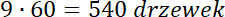 Policz ilość drzewek posadzonych w 9 rzędach po 60 sztuk.