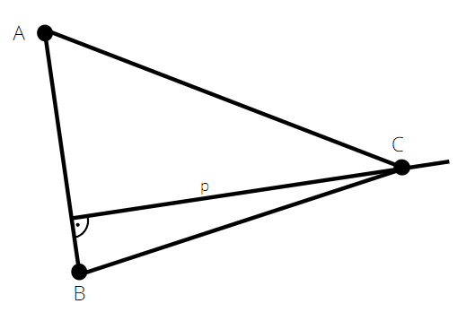Odcinek AB ma długość 4 cm, zatem wysokość na półprostej p musi mieć długość: