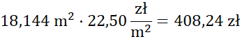 Odpowiedź: Wykładzina ma 5,04 m długości i 3,6 m szerokości, jej koszt to 408,24 zł.