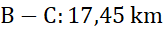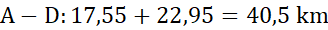 Podaj minimalną długość drogi z B do C oraz z A do D, jeśli długości podano w zaokrągleniu do 0,1 km.