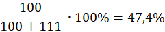 Podziel ilość mężczyzn przez ilość mężczyzn + liczbę przypadających na nich kobiet i pomnóż przez 100%.