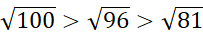 Pierwiastek kwadratowy z 96 leży na osi liczbowej między liczbami 9 i 10. | P | F |