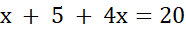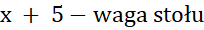 Ułóż równanie do zadania: stół z czterema krzesłami ważą 20 kg, a sam stół jest o 5 kg cięższy od krzesła. Oblicz wagę krzesła.