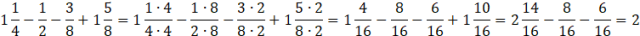 Sprowadź ułamki do wspólnego mianownika. W tym działaniu wspólnym mianownikiem liczb 4, 2 i 8 jest liczba 16. Jeśli to konieczne, z odjemnej wyciągnij całość.