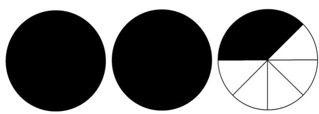 Pokoloruj zatem dwa całe koła i trzy z ośmiu części trzeciego koła. Łącznie będzie to 19 części, które pomalujesz.
