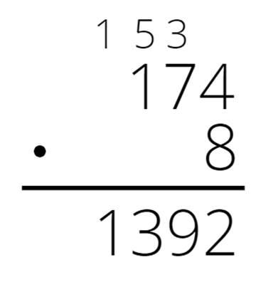 Wykonaj mnożenie pisemne liczby 174 przez 8.