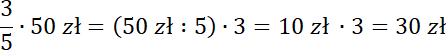 Najpierw musisz policzyć trzy piąte z 50 zł, czyli ile odkładał co miesiąc. Następnie policz liczbę miesięcy i pomnóż ją przez otrzymaną miesięczną kwotę.
