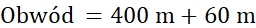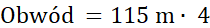 Obwód czwartego prostokąta wynosi 100 m, a bok wynosi 23 m: