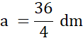 Obwód trzeciego kwadratu wynosi 36 dm, dlatego bok wynosi: