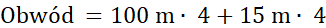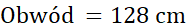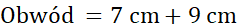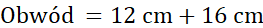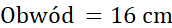 Obwód prostokąta o bokach długości a i b | 28 cm | 16 cm | 150 m | 100 m | 21 cm |