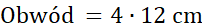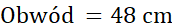 Obwód kwadratu | 48 cm | 22 cm | 36 dm | 1 m | 128 cm | 460 m |