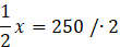Wiadomo, że 250 stanowi 50% całości. Aby obliczyć, ile wynosi całość, rozwiąż równanie z jedną niewiadomą.