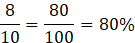 Obrazek składa się z 10 kwadratów. Zamalowano 8 z nich. Zatem zamalowana część to: