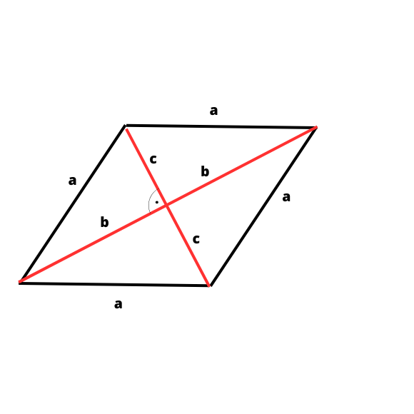 Zauważ, że w rombie przekątne dzielą ten czworokąt na cztery jednakowe trójkąty prostokątne różnoboczne.