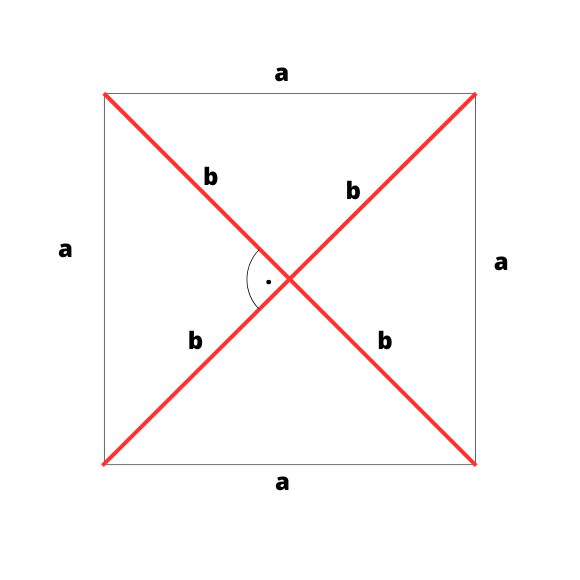 Zauważ, że w kwadracie przekątne dzielą ten czworokąt na cztery jednakowe trójkąty prostokątne równoramienne.