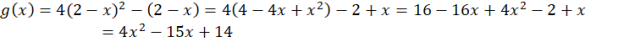 Żeby zapisać wzór funkcji g(x), w funkcji f w miejsce x musisz podstawić 2 – x: