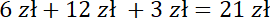 Karol ma 6 + 6 = 12 złotych. Witek ma 6 : 2 = 3 złote. Łącznie mają: