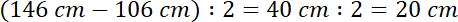 Należy odjąć średnicę całego basenu od średnicę basenu z wodą. Otrzymujemy grubość basenu z obu strony, dlatego trzeba jeszcze podzielić przez 2.