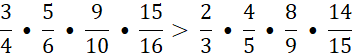 Musisz porównać poszczególne ułamki w iloczynach, np.: