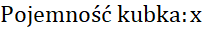 W tym ćwiczeniu musisz obliczyć pojemność kubka. Oznacz tą daną literą x, ułóż odpowiednie równanie i je rozwiąż.