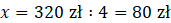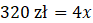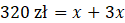 W tym zadaniu musisz na podstawie treści podać cenę spódnicy i żakietu – spódnica kosztuje 3 razy mniej niż żakiet, a razem należy za nie zapłacić 320 zł.