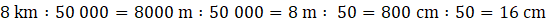 W tym zadaniu musisz na podstawie obliczyć odległość miejscowości Kluski od miejscowości Dalachów na mapie w skali 1 : 50 000. Wiesz, że w rzeczywistości ta odległość to 8 km.