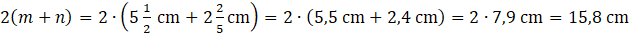 W tym zadaniu musisz napisać wzór na obwód równoległoboku o bokach i podstawić do niego wartości i .