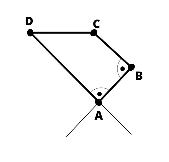 Zauważ, że kąt CBA i kąt DAB będą kątami prostymi. Narysuj odcinek półprostą o początku B pod kątem prostym do odcinka BC. Następnie narysuj półprostą równoległą do odcinka BC, która rozpoczyna się w punkcie D. W punkt przecięcia tych półprostych to nasz brakujący punkt A.
