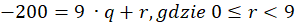 W pierwszej kolejności musisz przedstawić liczbę -200 w takiej postaci, aby r było liczbą naturalną większą od zera i mniejszą od 9.