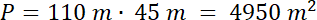 Policz pole powierzchni boiska piłkarskiego o wymiarach 110 m na 45 metrów.