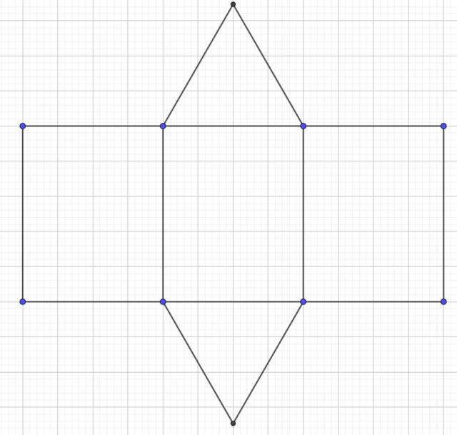Narysuj dowolny kształt, który po wycięciu nadawałby się do stworzenia modelu opisanego graniastosłupa. Jedna kratka ma bok o długości .