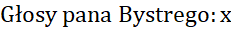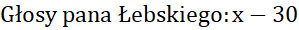 W głosowaniu wzięło udział 156 osób. Pan Bystry otrzymał dwukrotnie więcej głosów niż pan Ambitny i o 20 więcej niż pan Łebski, 11 głosów było nieważnych. Sprawdź, czy wybory na przewodniczącego zakończyły się sukcesem, jeśli trzeba było otrzymać połowę głosów.