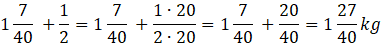 . Wykonaj dodawanie. Wspólnym mianownikiem liczb 40 i 2 jest liczba 40.