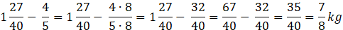 . Wykonaj odejmowanie. Wspólnym mianownikiem liczb 40 i 5 jest liczba 40.