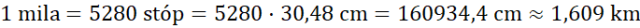 Zamień podane jednostki (wyniki zaokrąglij do części tysięcznych), wiedząc, że 1 stopa = 30,48 cm, 1 jard = 3 stopy, 1 mila = 5280 stóp.