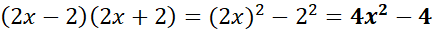 Dokonaj mnożenia wyrażeń: 2x – 2 oraz 2x + 2.