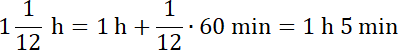 Przelicz podany ułamek niewłaściwy na godziny i minuty.